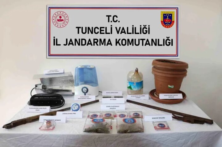Tunceli'de jandarma takımları tarafından düzenlenen operasyonda, uyuşturucu üretiminde kullanılan gereçlerle birlikte 100 gram esrar...